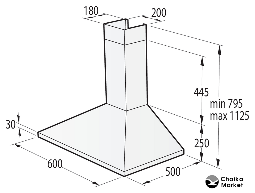 конструкция наклонная, монтаж настенный, ширина 60 см, управление сенсорное, производительность мотора 850 м³/ч, цвет белый