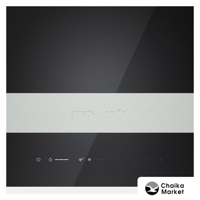 конструкция Т-образная, монтаж настенный, ширина 90 см, управление электронное/кнопочное, производительность вытяжки 580 м³/ч, цвет нержавеющая сталь
