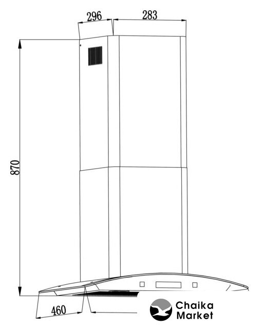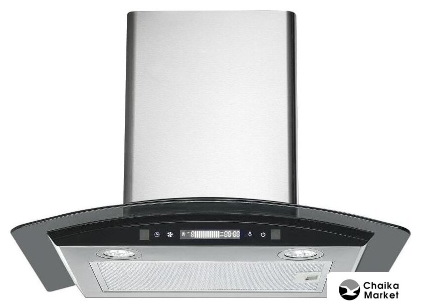 конструкция наклонная, монтаж настенный, ширина 60 см, управление сенсорное, производительность мотора 850 м³/ч, цвет черный