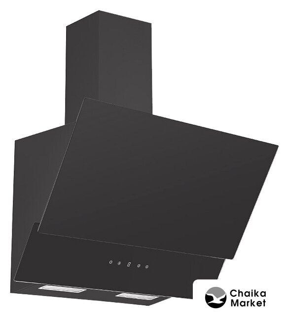 конструкция Т-образная, монтаж настенный, ширина 60 см, управление механическое/кнопочное, производительность мотора 600 м³/ч, цвет черный