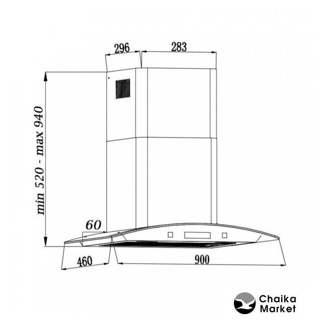конструкция наклонная, монтаж настенный, ширина 60 см, управление кнопочное, производительность вытяжки 550 м³/ч, цвет черный/зеленый