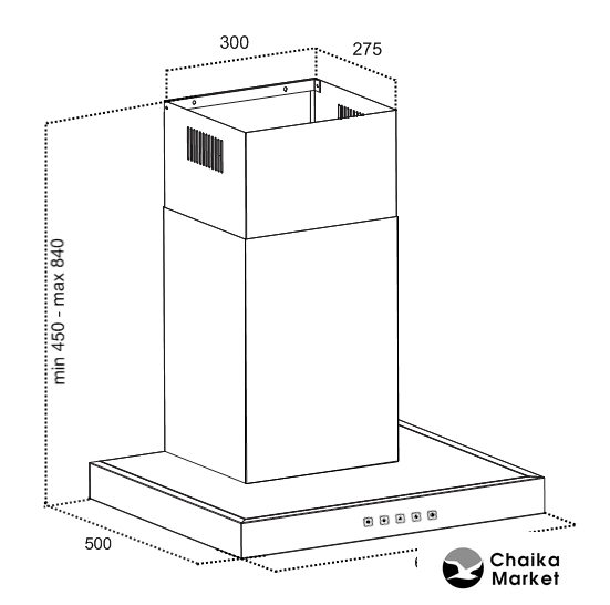 конструкция Т-образная, монтаж настенный, ширина 70 см, управление сенсорное, производительность мотора 1020 м³/ч, цвет нержавеющая сталь