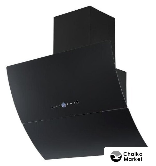конструкция купольная, монтаж настенный, ширина 59.6 см, управление механическое/кнопочное, производительность мотора 1300 м³/ч, цвет черный