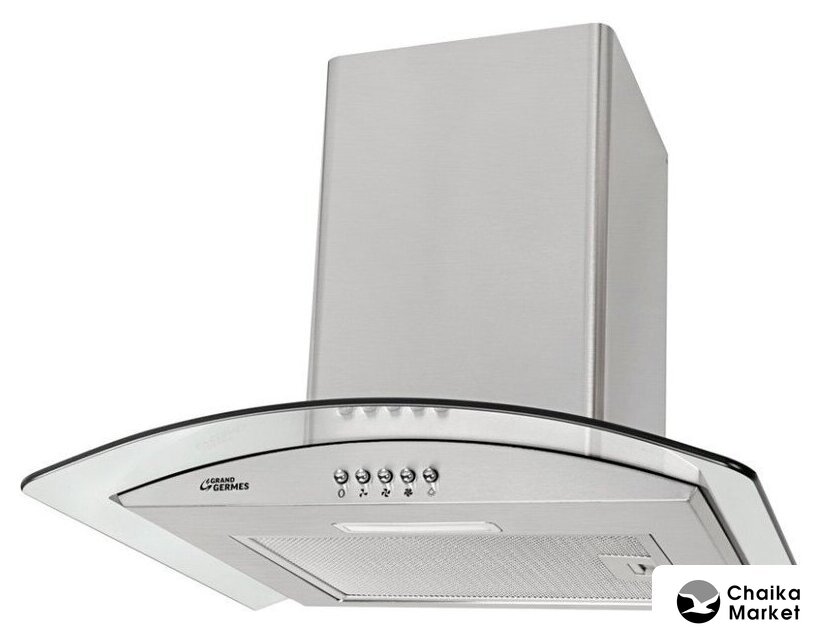 конструкция купольная, монтаж настенный, ширина 60 см, управление электронное/кнопочное, производительность мотора 900 м³/ч, цвет нержавеющая сталь