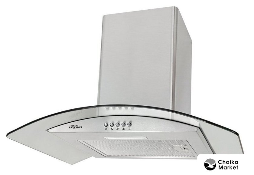 конструкция купольная, монтаж настенный, ширина 50 см, управление электронное/кнопочное, производительность мотора 900 м³/ч, цвет нержавеющая сталь