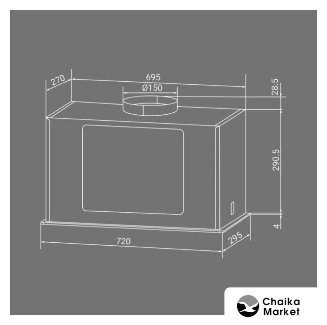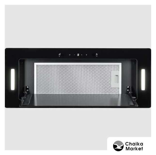 конструкция скрытая, монтаж для встраивания, ширина 73.5 см, управление механическое/кнопочное, производительность вытяжки 370 м³/ч, цвет черный