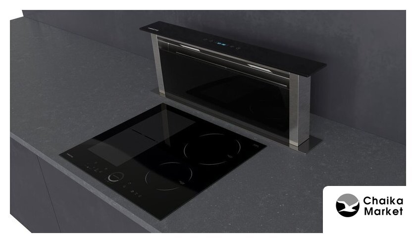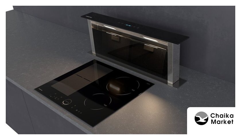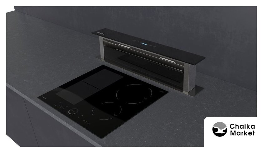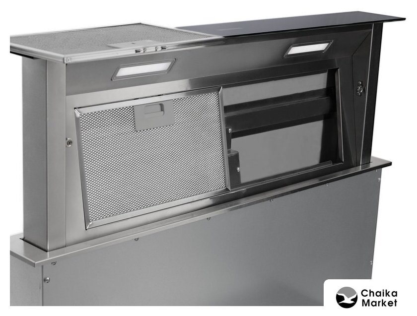 конструкция телескопическая, монтаж для встраивания, управление сенсорное, производительность мотора 1000 м³/ч, ширина 59.7 см