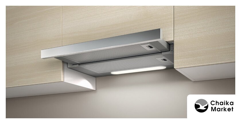 конструкция наклонная, монтаж настенный, управление электронное/кнопочное, производительность мотора 550 м³/ч, ширина 60 см