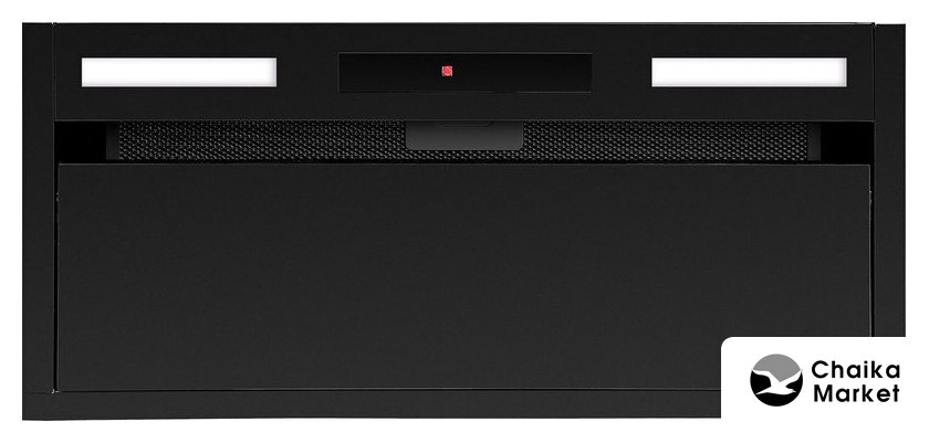 конструкция скрытая, монтаж для встраивания, ширина 89.7 см, управление сенсорное, производительность мотора 1050 м³/ч, цвет черный