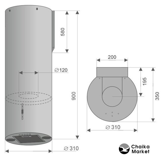 конструкция наклонная, монтаж настенный, ширина 59.8 см, управление сенсорное, производительность мотора 900 м³/ч, цвет белый