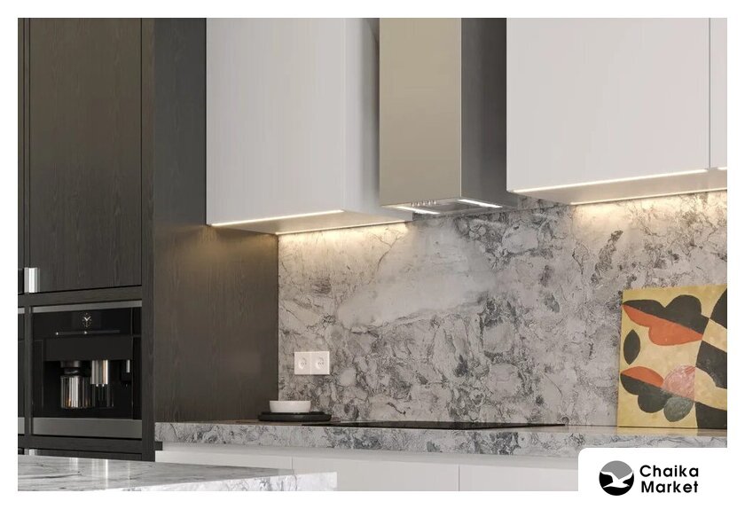 конструкция скрытая, монтаж для встраивания, ширина 60 см, управление электронное/кнопочное, производительность вытяжки 1000 м³/ч, цвет белый