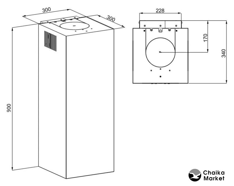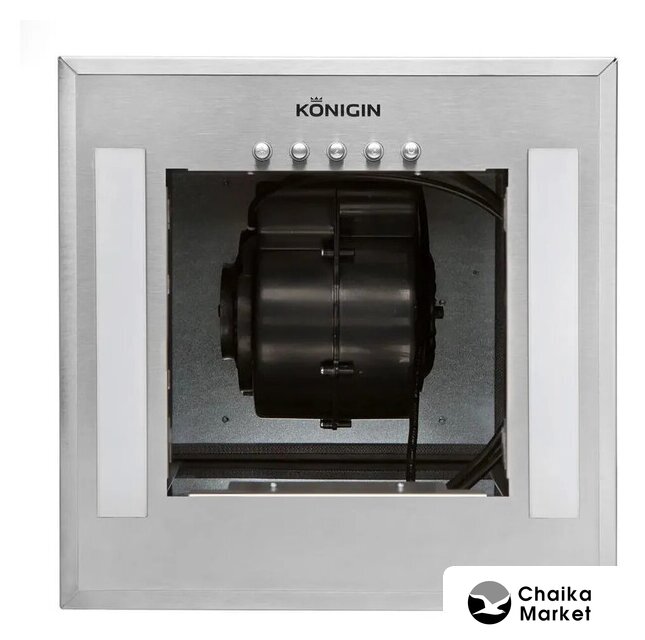 конструкция купольная, монтаж настенный, ширина 59.8 см, управление сенсорное, производительность мотора 800 м³/ч, цвет нержавеющая сталь/черный