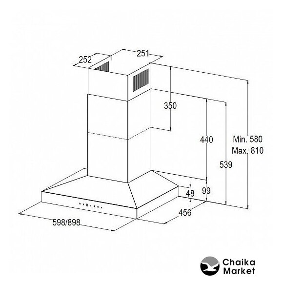 конструкция наклонная, монтаж настенный, ширина 59 см, управление сенсорное, производительность мотора 1000 м³/ч, цвет черный