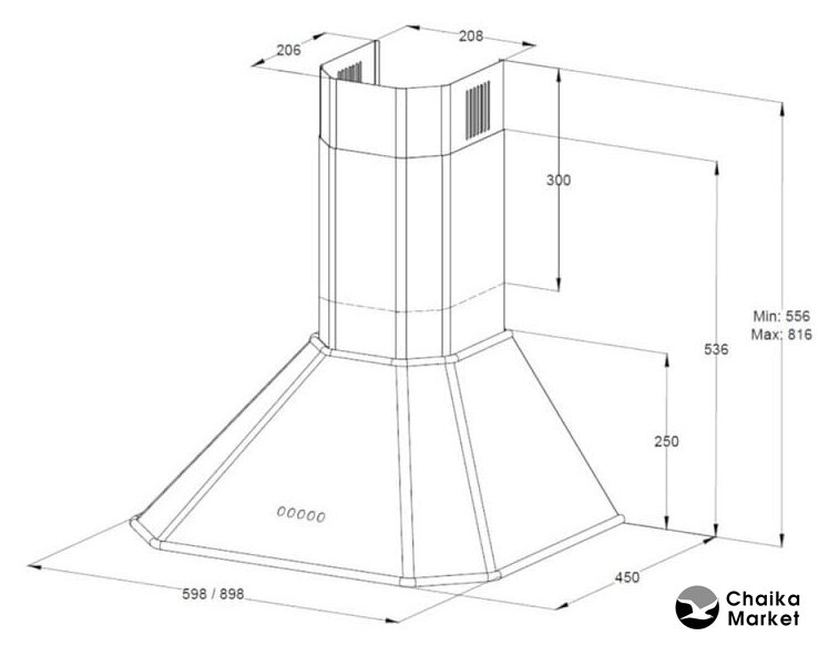 конструкция телескопическая, монтаж для встраивания, ширина 89.8 см, управление механическое/кнопочное, производительность вытяжки 336 м³/ч, производительность мотора 650 м³/ч, цвет белый/серый