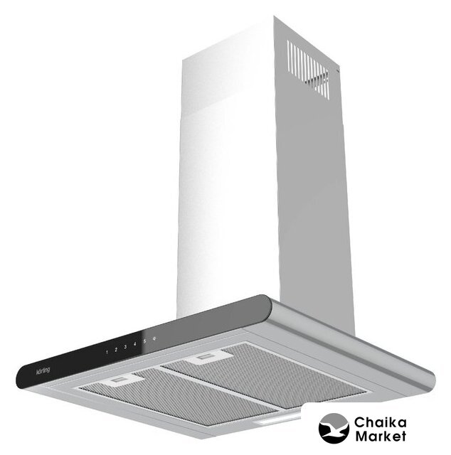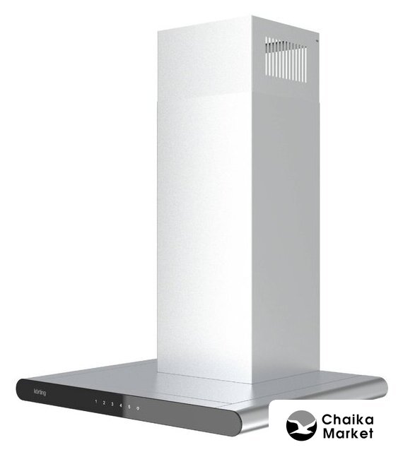 конструкция наклонная, монтаж островной, ширина 90 см, управление сенсорное, производительность мотора 850 м³/ч, цвет белый/серебристый