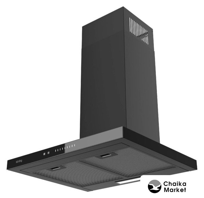 конструкция коробчатая, монтаж настенный, ширина 40 см, управление электронное/кнопочное, производительность мотора 750 м³/ч, цвет черный
