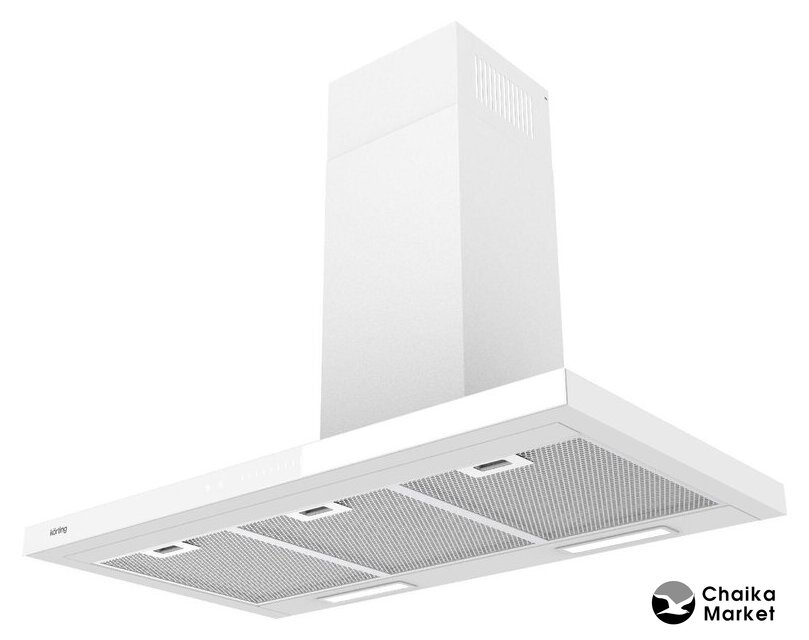 конструкция коробчатая, монтаж островной, ширина 35.15 см, управление электронное/кнопочное, производительность мотора 1050 м³/ч, цвет белый