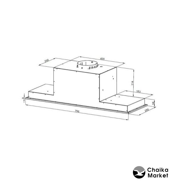 конструкция Т-образная, монтаж настенный, ширина 60 см, управление сенсорное/дистанционное, производительность вытяжки 1100 м³/ч, производительность мотора 950 м³/ч, цвет черный