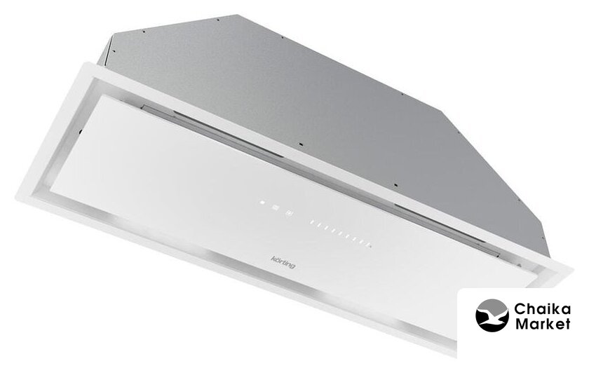 конструкция скрытая, монтаж для встраивания, ширина 54 см, управление электронное/кнопочное, производительность мотора 1000 м³/ч, цвет белый