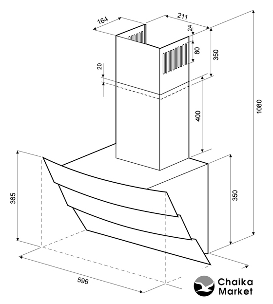 конструкция наклонная, монтаж настенный, ширина 59.5 см, управление сенсорное, производительность мотора 1400 м³/ч, цвет белый