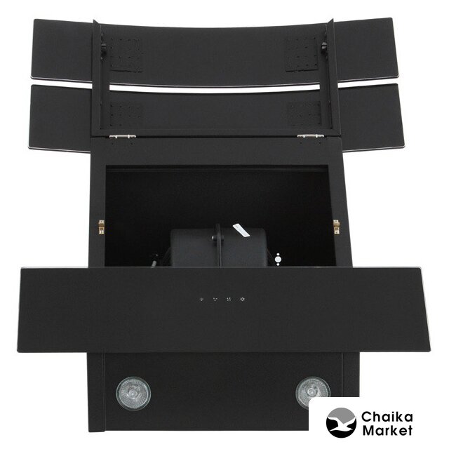 конструкция наклонная, монтаж настенный, ширина 59.5 см, управление сенсорное, производительность мотора 1400 м³/ч, цвет черный