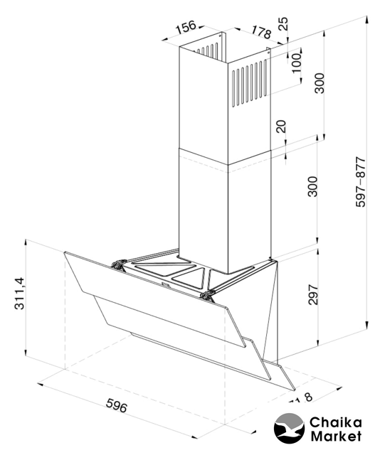 конструкция наклонная, монтаж настенный, ширина 59.8 см, управление сенсорное, производительность мотора 950 м³/ч, цвет белый