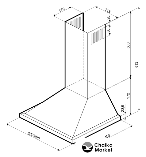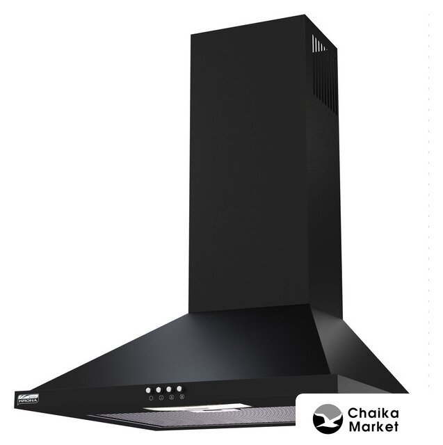 конструкция наклонная, монтаж настенный, ширина 59.6 см, управление механическое/кнопочное, производительность мотора 840 м³/ч, цвет черный