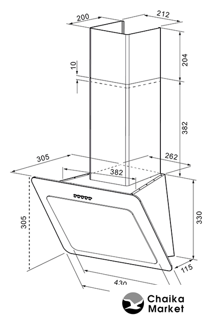 конструкция купольная, монтаж настенный, управление механическое/слайдерное, производительность мотора 650 м³/ч, ширина 60 см