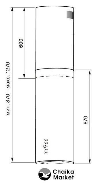 конструкция купольная, монтаж настенный, управление электронное/кнопочное, производительность мотора 950 м³/ч, ширина 60 см