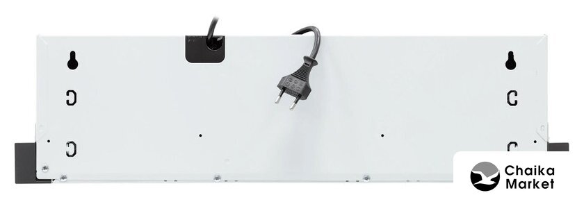 конструкция наклонная, монтаж настенный, ширина 59.6 см, управление механическое/кнопочное, производительность мотора 840 м³/ч, цвет черный