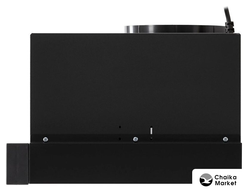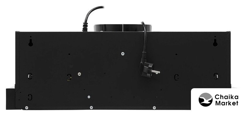 конструкция Т-образная, монтаж настенный, ширина 59.7 см, управление механическое/кнопочное, производительность мотора 790 м³/ч, цвет черный