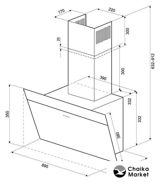 Комплектация | декоративный короб воздуховода вытяжки – 2 шт., евровилка со шнуром 120 см, переходной фланец 150/120 мм, упаковка с комплектом крепежа вытяжки к стене, инструкция |