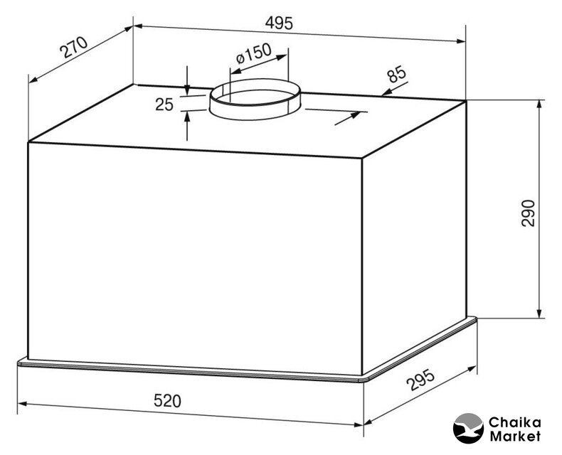 конструкция коробчатая, монтаж настенный, ширина 35 см, управление электронное/кнопочное, производительность вытяжки 850 м³/ч, производительность мотора 1050 м³/ч, цвет белый
