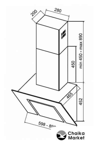 конструкция наклонная, монтаж настенный, ширина 59.5 см, управление сенсорное, производительность мотора 950 м³/ч, цвет черный