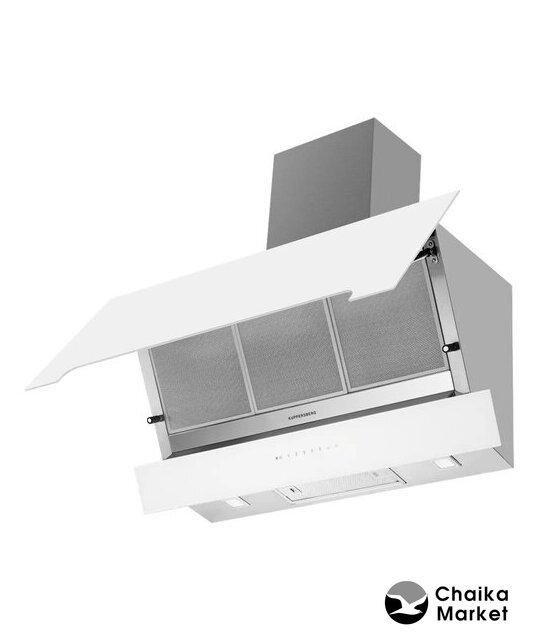 конструкция скрытая, монтаж для встраивания, ширина 71.4 см, управление электронное/кнопочное, производительность вытяжки 550 м³/ч, производительность мотора 1050 м³/ч, цвет белый
