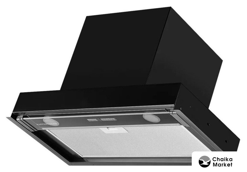 конструкция Т-образная, монтаж настенный, управление электронное/кнопочное, производительность мотора 700 м³/ч, ширина 90 см