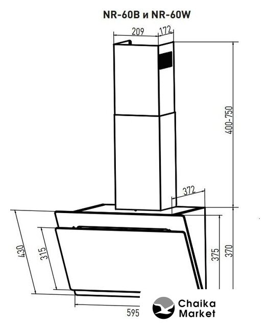 конструкция коробчатая, монтаж настенный, ширина 40 см, управление механическое/кнопочное, производительность мотора 1000 м³/ч, цвет нержавеющая сталь