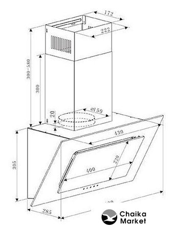 конструкция коробчатая, монтаж настенный, ширина 40 см, управление механическое/кнопочное, производительность мотора 700 м³/ч, цвет белый