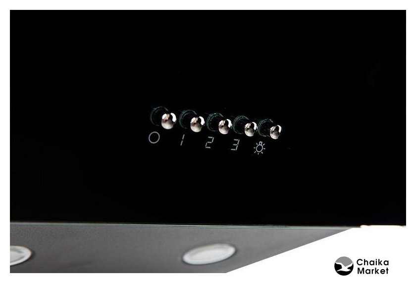 конструкция наклонная, монтаж настенный, ширина 50 см, управление сенсорное, производительность мотора 900 м³/ч, цвет черный