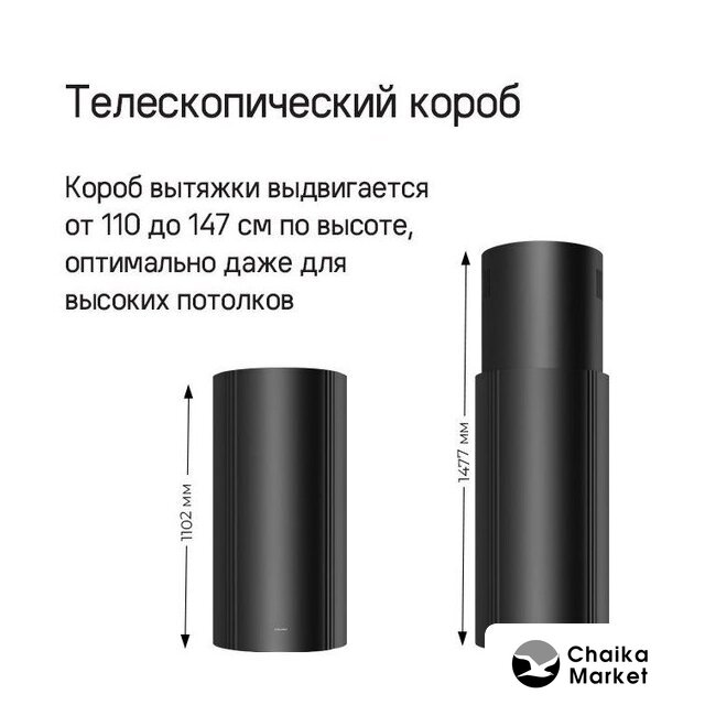 конструкция коробчатая, монтаж островной, ширина 40 см, управление электронное/кнопочное, производительность мотора 1150 м³/ч, цвет черный