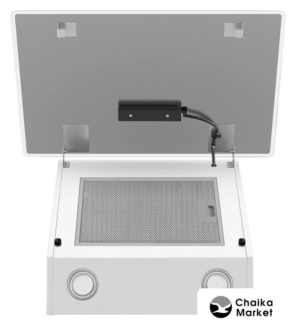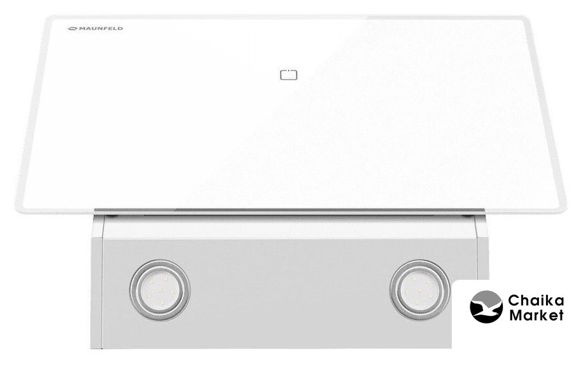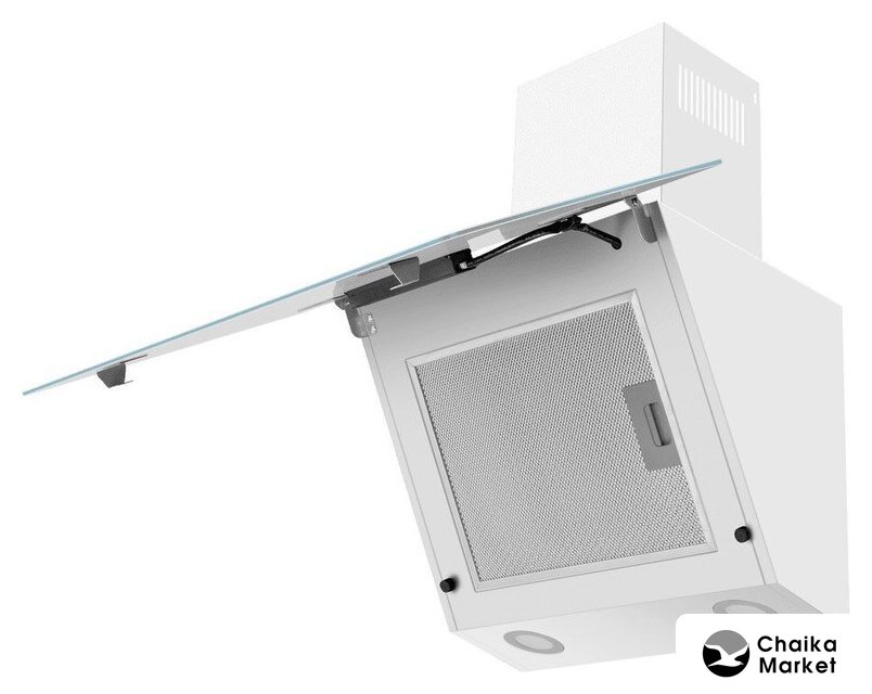 конструкция наклонная, монтаж настенный, ширина 60 см, управление сенсорное, производительность мотора 1000 м³/ч, цвет белый