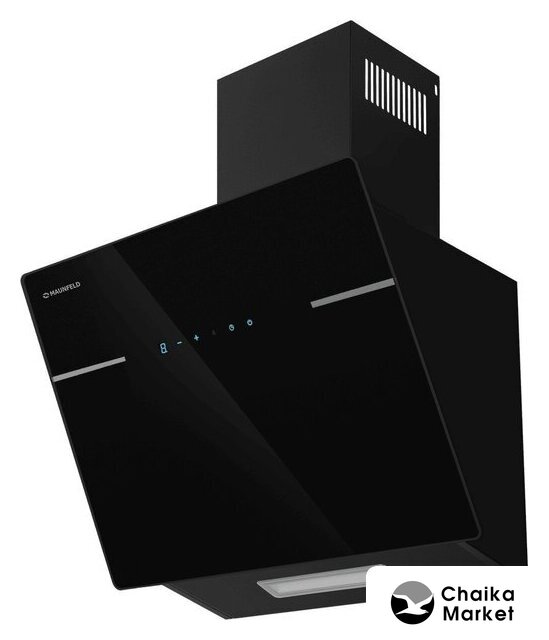 конструкция наклонная, монтаж настенный, ширина 60 см, управление сенсорное, производительность мотора 850 м³/ч, цвет черный