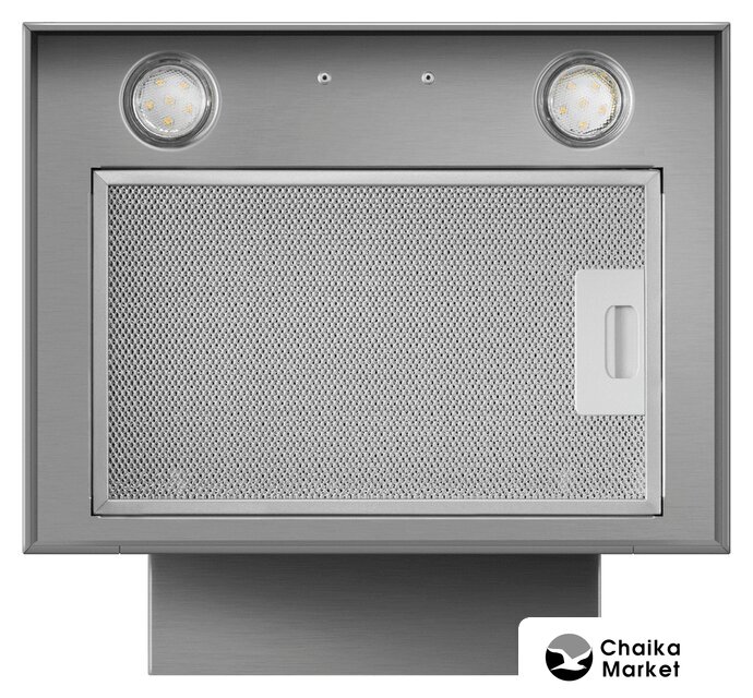 конструкция коробчатая, монтаж островной, ширина 38 см, управление механическое/кнопочное, производительность мотора 1000 м³/ч, цвет нержавеющая сталь