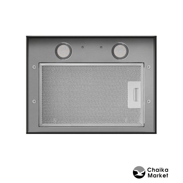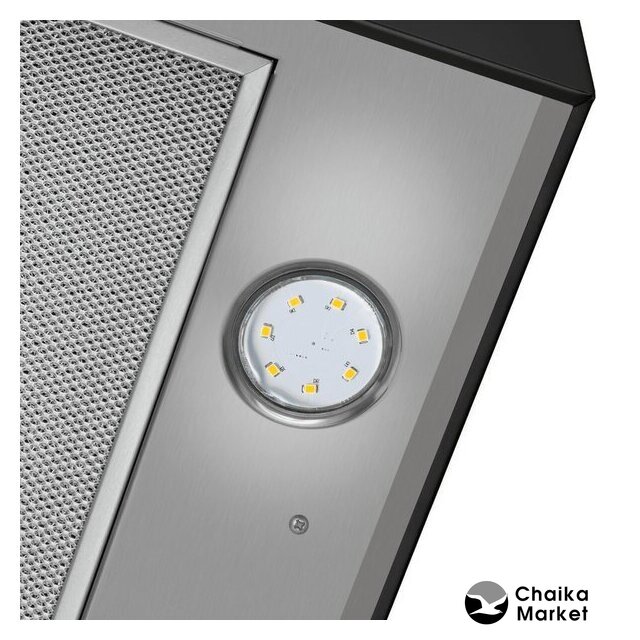 конструкция скрытая, монтаж для встраивания, ширина 59.4 см, управление поворотный переключатель, производительность вытяжки 610 м³/ч, производительность мотора 1000 м³/ч, цвет белый/нержавеющая сталь