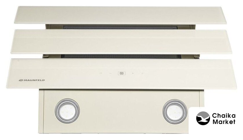 конструкция наклонная, монтаж настенный, ширина 50 см, управление сенсорное/жестами, производительность мотора 1050 м³/ч, цвет белый