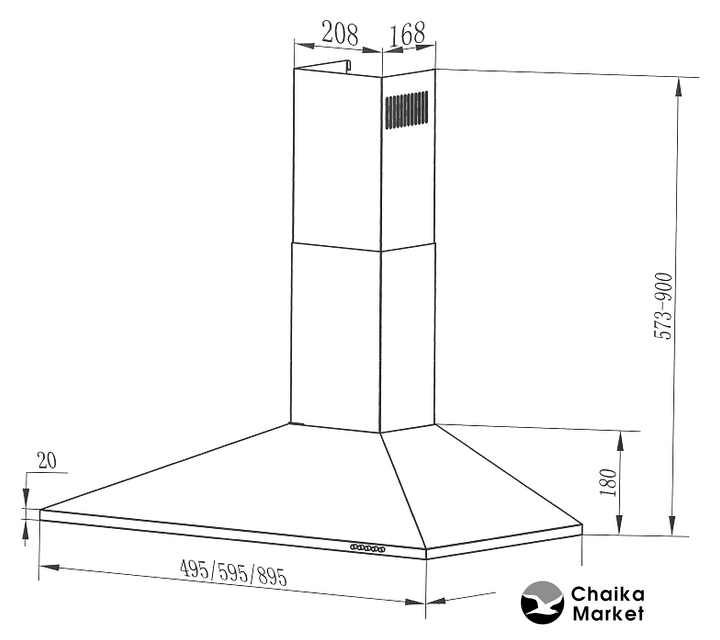 конструкция скрытая, монтаж для встраивания, управление механическое/слайдерное, производительность мотора 600 м³/ч, ширина 59.8 см