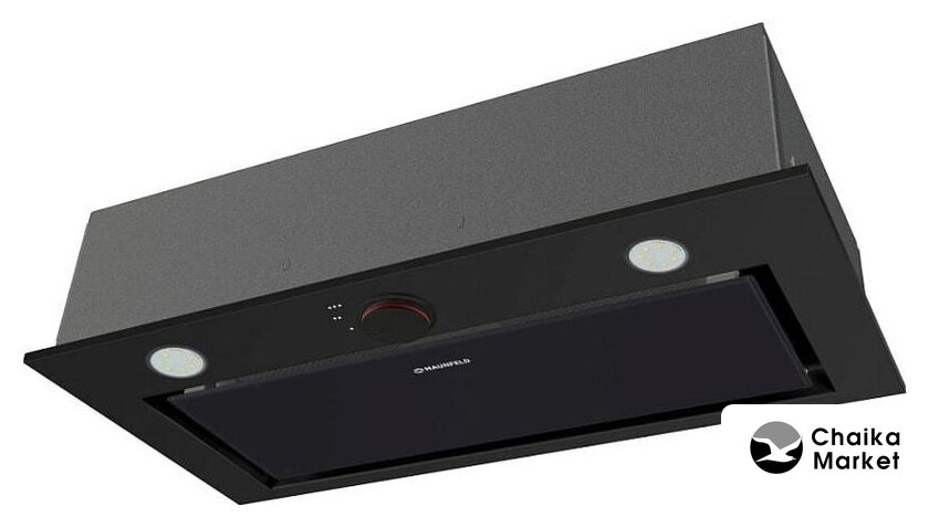конструкция наклонная, монтаж настенный, ширина 60 см, управление сенсорное, производительность мотора 1000 м³/ч, цвет черный