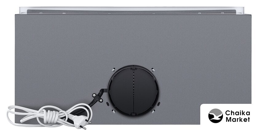конструкция скрытая, монтаж для встраивания, ширина 59.8 см, управление механическое/кнопочное, производительность мотора 850 м³/ч, цвет черный