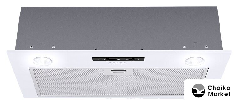 конструкция скрытая, монтаж для встраивания, ширина 59.8 см, управление механическое/кнопочное, производительность мотора 1050 м³/ч, цвет белый