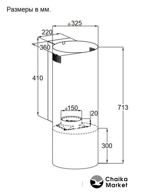 | Диаметр воздуховода | 150 мм |